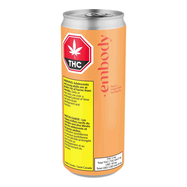 This sparkling white tea combines the flavours of fresh sweet peach with spicy ginger in a decaffeinated white tea with 40 mg of CBD and 2 mg THC. Carbonated water, Sugars(organic coconut blossom nectar),natural flavour, cannabis emulsion (water, gum acacia, modified coconut oil (medium chain triglycerides), citric acid, vitamin E, potassium sorbate, sodium benzoate, quillaia extract), decaffeinated white tea, ginger extract,ascorbic acid, sodium benzoate,potassium sorbate.