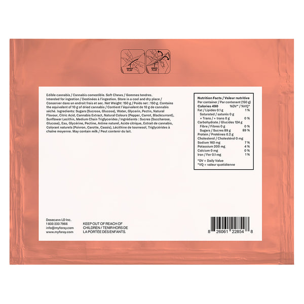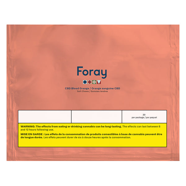 The refreshing and rich taste of Foray Blood Orange CBD soft chew is a real treat. Each soft chew is made with 20 mg of fresh CBD isolate, no artificial colours or flavours, and is made without animal products. Discrete, delicious and delightful, Foray's Blood Orange daily CBD soft chews are made for anyone on their cannabis journey.