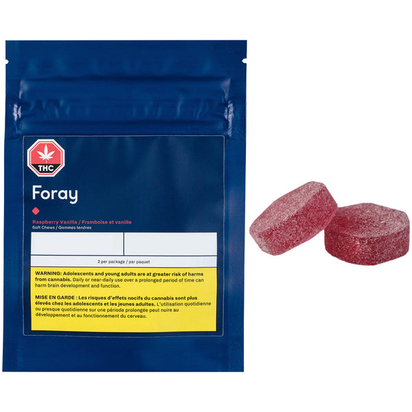 Each piece contains 5mg of THC. This delicious raspberry and vanilla combination was designed by the former head of Canada’s Smartest Kitchen, renowned for developing cutting-edge food products. Made from a Sativa/Indica blend, Foray Soft Chews are proudly developed and manufactured in Charlottetown, PEI by a team of experts.