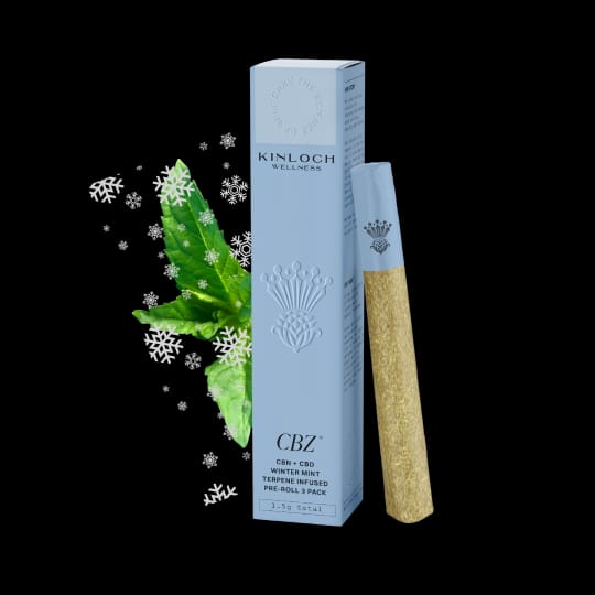 3 pre-rolls/pack - 0.5g each with 20mg CBN + 40mg CBD per pre-roll, 180mg active cannabinoids and 1.5g infused pre-rolls per pack. Each high-CBD, low-THC pre-roll contains 40 mg of CBD from low-THC cannabis ideal for evening use. Kinloch’s CBZ™ pre-rolls contain multi-compound, broad-spectrum minor cannabinoid formulations rich in CBD and CBN, the perfect accompaniment to any night time routine. Our unique tube-style CBN pre-roll is mood-focused for a broad-spectrum high infused with natural terpenes for a winter mint experience.